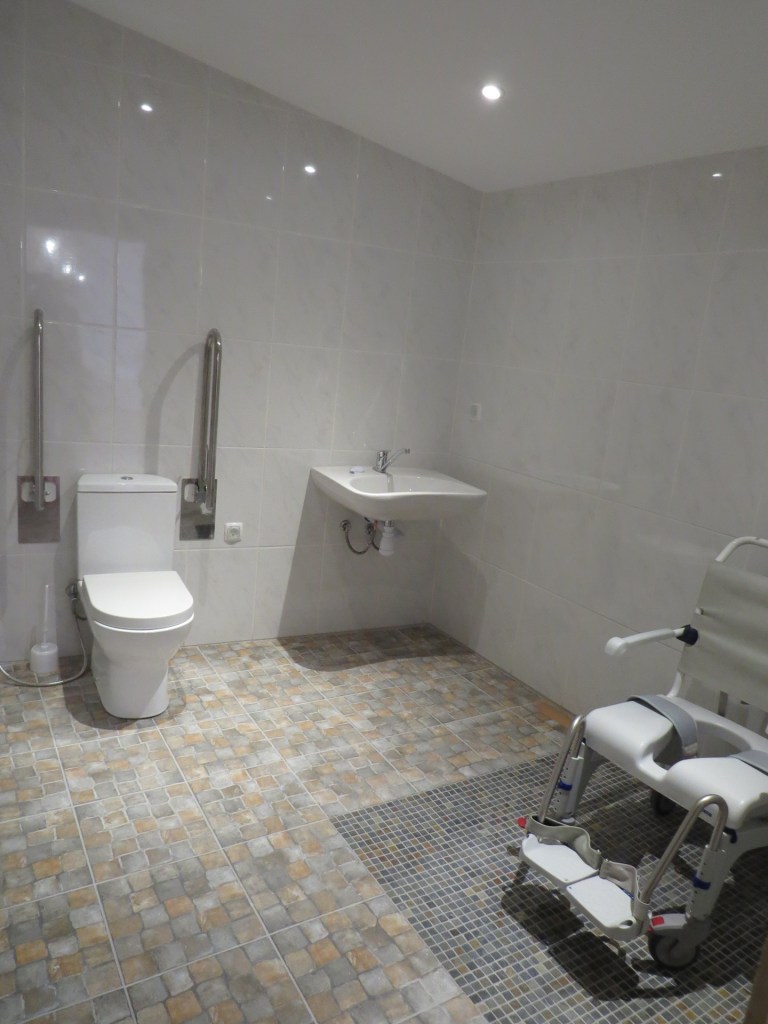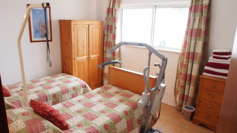 All three apartments come with a wet room with a wheel in shower and numerous shower chairs and a shower table. An electric portable hoist, a riser / recliner arm chair plus lots of other disability equipment are available for free during your stay The 2 and 3 bedroom apartments have at least 1 electric fully adjustable profiling bed. Outside you’ll find a patio area and swimming pool with sling type hoist.