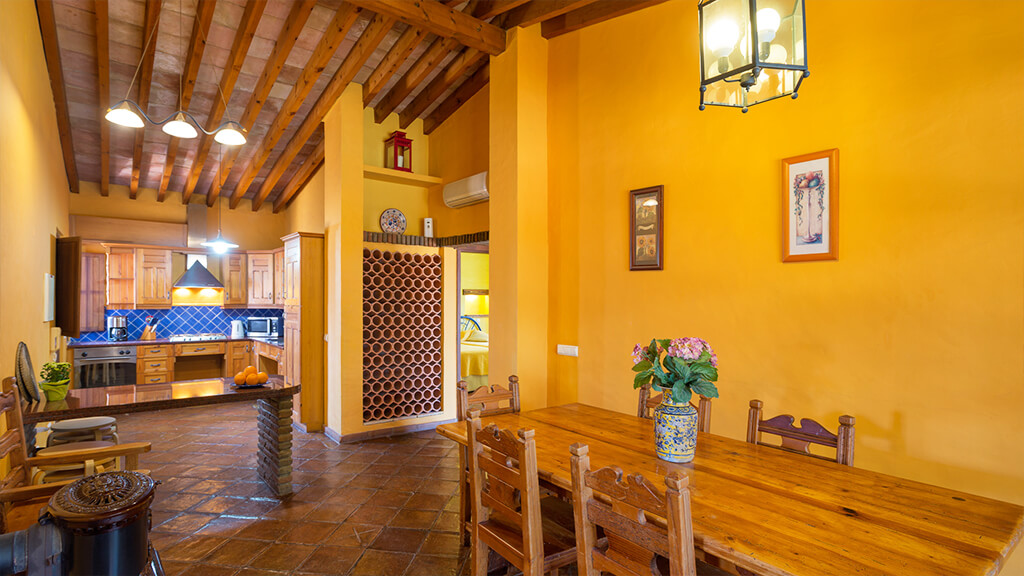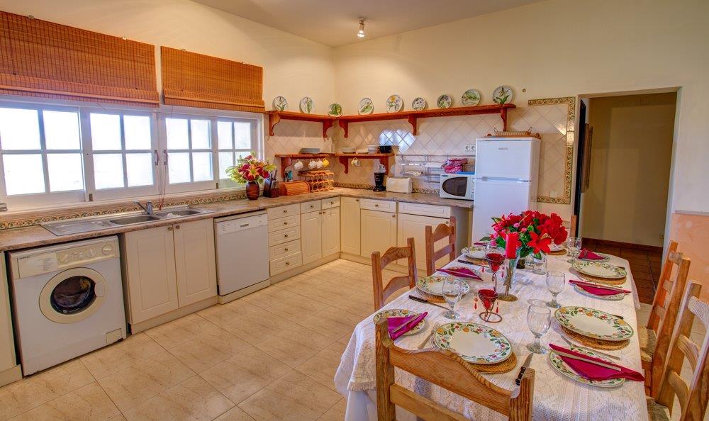 The kitchen is also light and spacious (25m2). A large wide window with views overlooking the north valley and countryside. A comfortable wooden dining table. Fully equipped kitchen with plenty of plates, pots and pans, glasses and utensils. Dishwasher, washing/dryer machine, fridge/freezer, microwave, toaster, hob and oven.