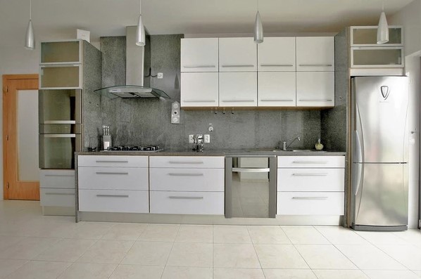 - Kitchen with dishwasher, fridge / freezer, oven, microwave and toaster