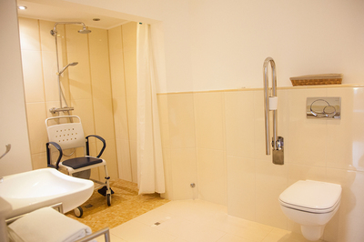 - The en-suite has a wheel in shower, shower chair and accessible sink