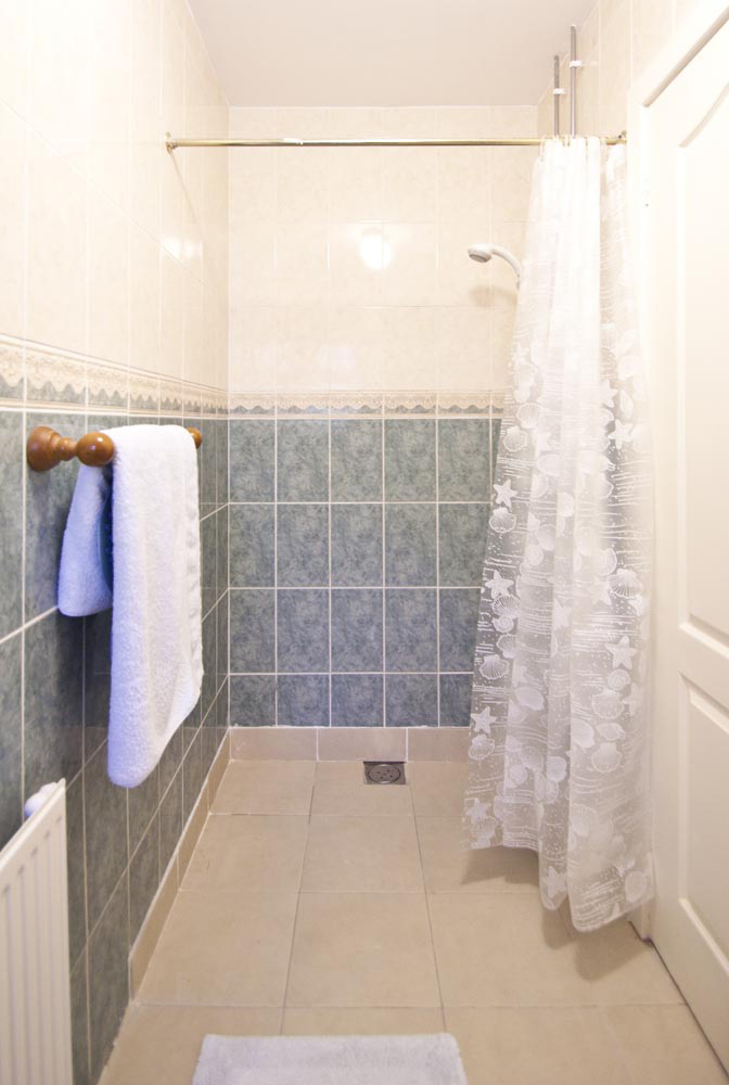 The accessible bedroom is next to the sitting room and has similar wheelchair accessible sliding doors onto the terrace, and is a bright airy room. This bedroom is equipped with an ArjoHuntleigh Minuet profiling electric bed with a Hi-Visc mattress. There is an ArjoHuntleigh Maxi Sky 2 tracking ceiling hoist system that can transport the guest into the bathroom, and into the bath. The ceiling hoist is fitted with the clip type fitting and we have both dressing slings and bathing slings available in the house. If you have Oxford type slings let us know, and we can change our spreader bar to accommodate your slings.