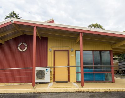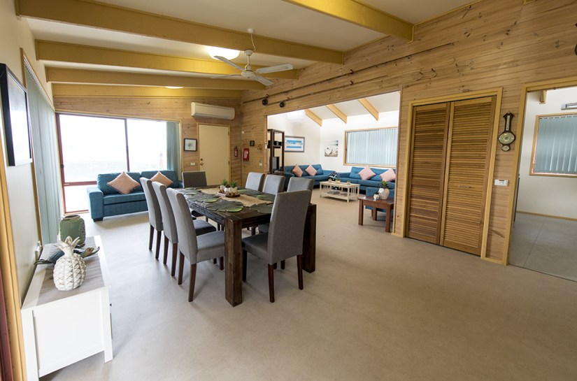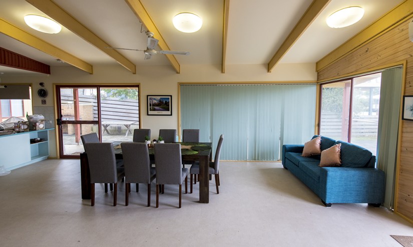 Wheelies Rest is run by Muscular Dystrophy Australia and is a purpose built accessible 4 bedroom villa on Phillip Island sleeping 11. One of the twin bedrooms has a ceiling track hoist above the two electric hi-lo single beds. The separate wet room doesn’t have a ceiling hoist but they do provide a manual hoist for hoisting onto the wheeled shower chair or commode. The kitchen has space under the hob and sink for chair users and there’s a large open plan living area. Outside there’s a BBQ and sitting area.