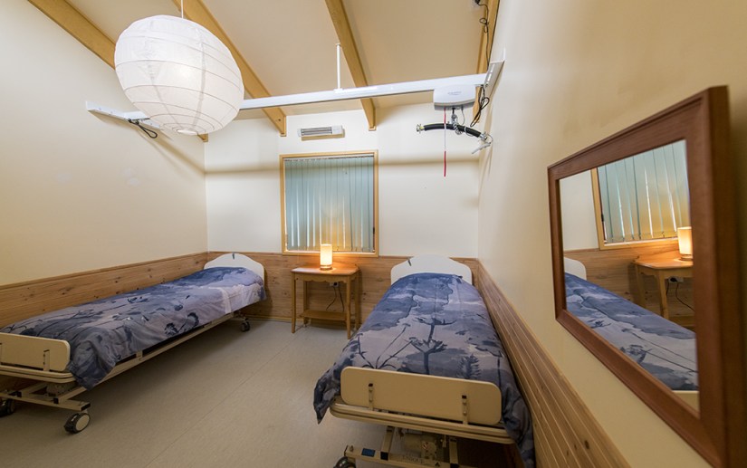 - The twin has 2 Hi-Lo adjustable beds and a ceiling track hoist