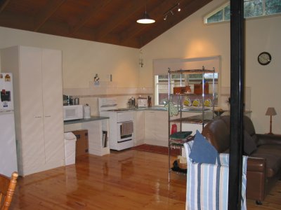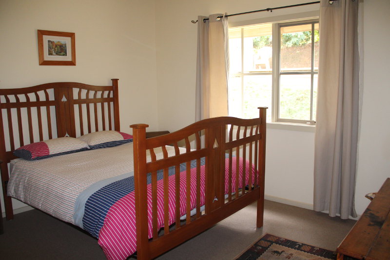 The house is fully self-contained and offers cathedral ceilings, large open family/kitchen/lounge area with wood heater and many large windows. There are two bathrooms and most conveniences such as T.V, video, DVD, CD player, books, games and toys. The Cottage has front and back verandahs. The back verandah is large with a table and chairs. A BBQ is located on the back verandah. Wattletree Cottage has been set up to provide a holiday opportunity for all, including those with mobility issues.