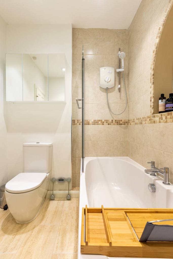 - Upstairs there’s a separate family bathroom with bath, washbasin & W.C