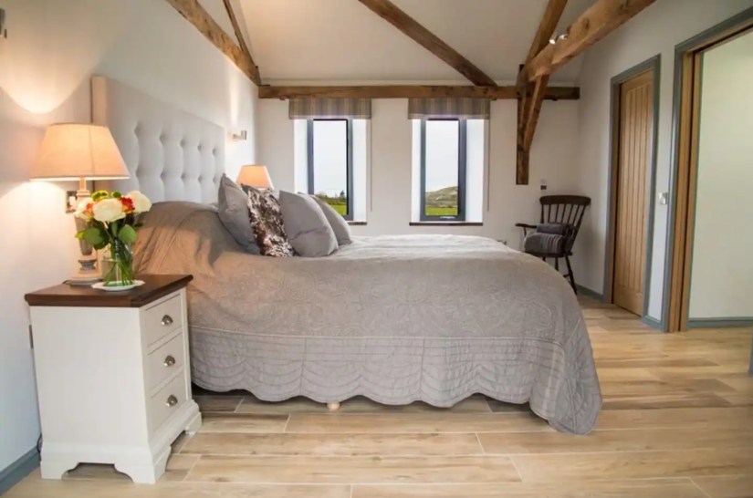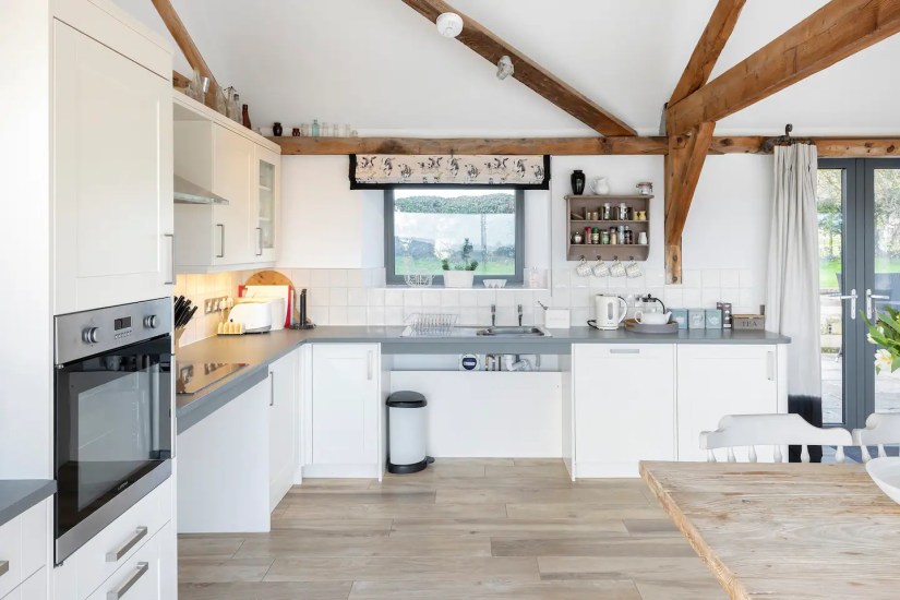 The Calf Shed is a fantastic one bedroom fully accessible barn conversion offering outstanding panoramic views via floor to ceiling sliding doors over the famous Fovant Badges. The contemporary accommodation has been designed for wheelchair users with flexible open plan living accommodation that flows into a cottage garden with south facing level patio.