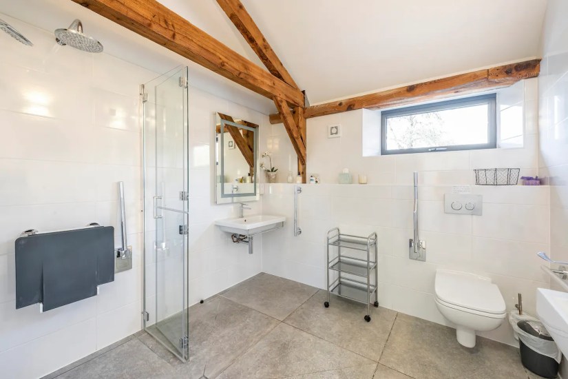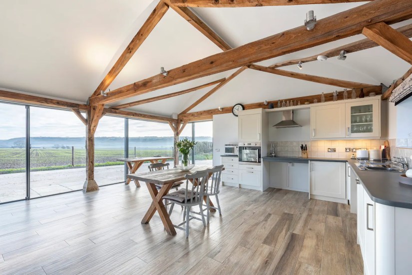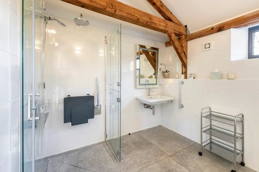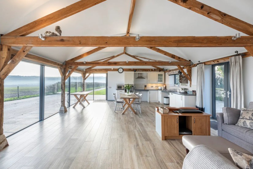 This contemporary one bedroom property comprises of a spacious open plan living area and kitchen. A large accessible designer wet room. Stunning double bedroom with electric profiling bed. A large BBQ patio and garden. The opening glass facade allows guests to bring the countryside inside whilst living in luxury and enjoying the panoramic views of the historic downlands.