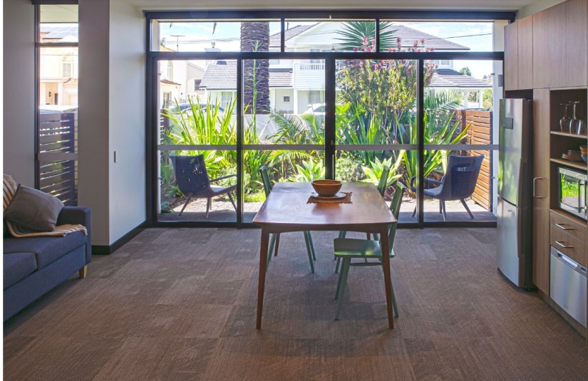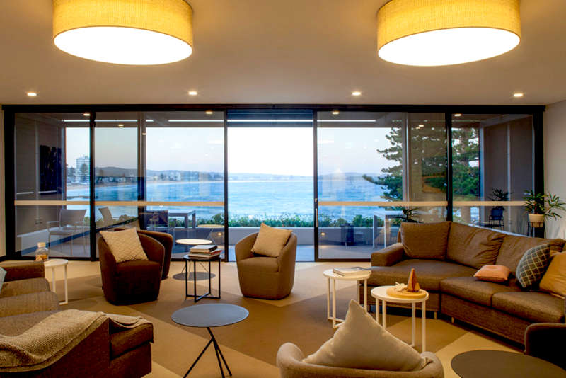 Take in the breathtaking views of the beautiful Northern Beaches peninsula from the comfort of our guest lounge. This area is a quiet and casual open space for relaxation with direct access to an outdoor balcony also overlooking the Pacific Ocean. There’s also a gym onsite and a recreation room with games consoles and a pool table