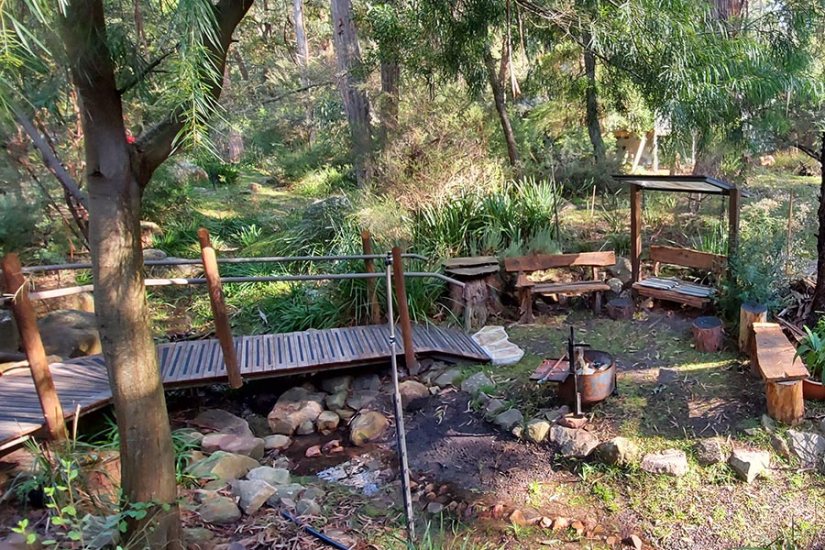 There is an undercover deck area overlooking the creek with a Weber BBQ for outdoor dining. Take in the peace of the bush as you fire up the barbie on the deck amongst the gum trees. Sit around the campfire toasting marshmallows and drinking your favourite wine. All the while sharing your experience with the birds, visiting wildlife and the bubbling creek.