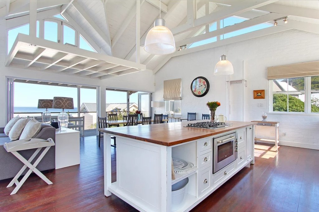 Sitting on a sand dune above the beach and “upside down” to take advantage of the ocean views, The Beach House looks out over Noordhoek’s famous Long Beach. It has been fully adapted to accommodate most disabilities. The kitchen, living & dining areas are all in one room – completely open plan and therefore barrier free. The adapted bedroom has furniture spaced to make it easy to manoeuvre a wheelchair.