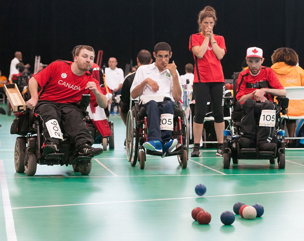 BC1 – Players with Cerebral Palsy who are able to use their hands or feet to consistently propel a ball into play. BC1 athletes may have an aide on court to pass them their ball before each shot